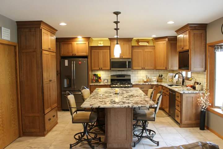 We offer a wide variety of kitchen cabinet options. Mission style or raised panel are two of our most popular options. We can also stain any wood of your choice; oak, cherry or alder. If you are looking for a more modern look we can spray cabinets with lacquer that comes in any color!